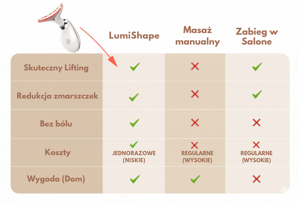 Zyskujesz nielimitowany dostęp do zabiegów premium w cenie jednej wizyty w salonie, oszczędzając tysiące złotych na profesjonalnych kuracjach. Urządzenie pozwala na szybki lifting w domowym zaciszu, eliminując konieczność dojazdów i planowania wizyt u kosmetyczki.
